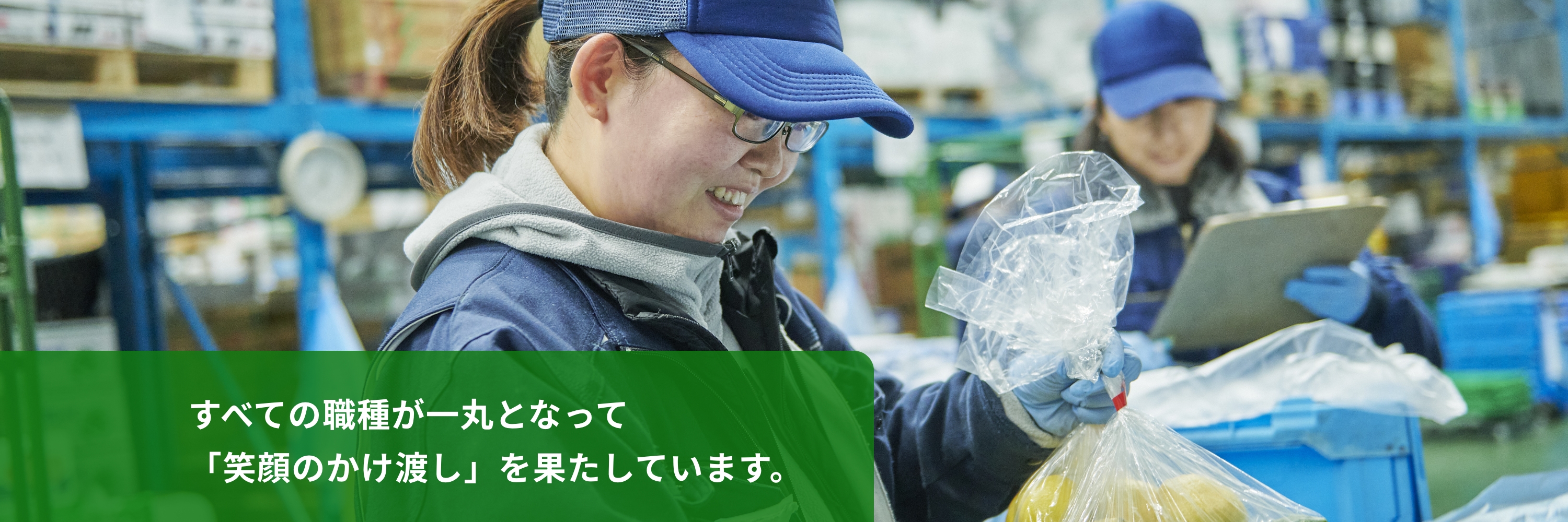 倉庫に集めた野菜を、飲食店へ届けるために注文に応じてピッキング・段ボール梱包する仕事です。集荷トラックが来るまでの限られた時間で注文に対応するため、迅速な作業とチームワークで仕事を進めます。