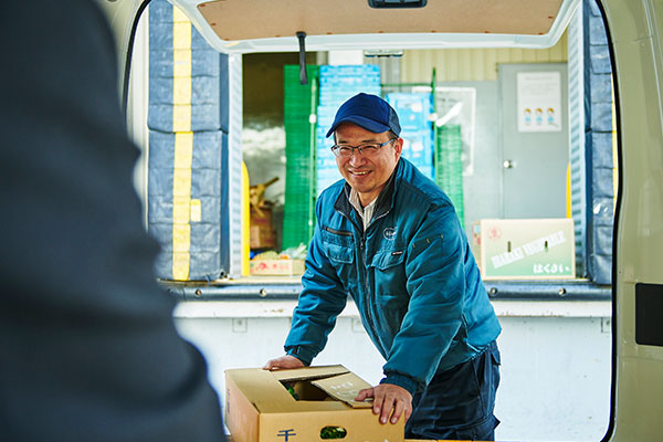 飲食店からのご要望にお応えするため、ご希望の青果について伺ったりお店に届けたりするなど、日吉と飲食店をつなぐ架け橋となる仕事です。夜間にピッキング・梱包を行ってから店舗へとお届けし、その後に新規の営業を行うこともあります。